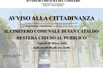 IL CIMITERO COMUNALE DI SAN CATALDO RESTERÀ CHIUSO AL PUBBLICO