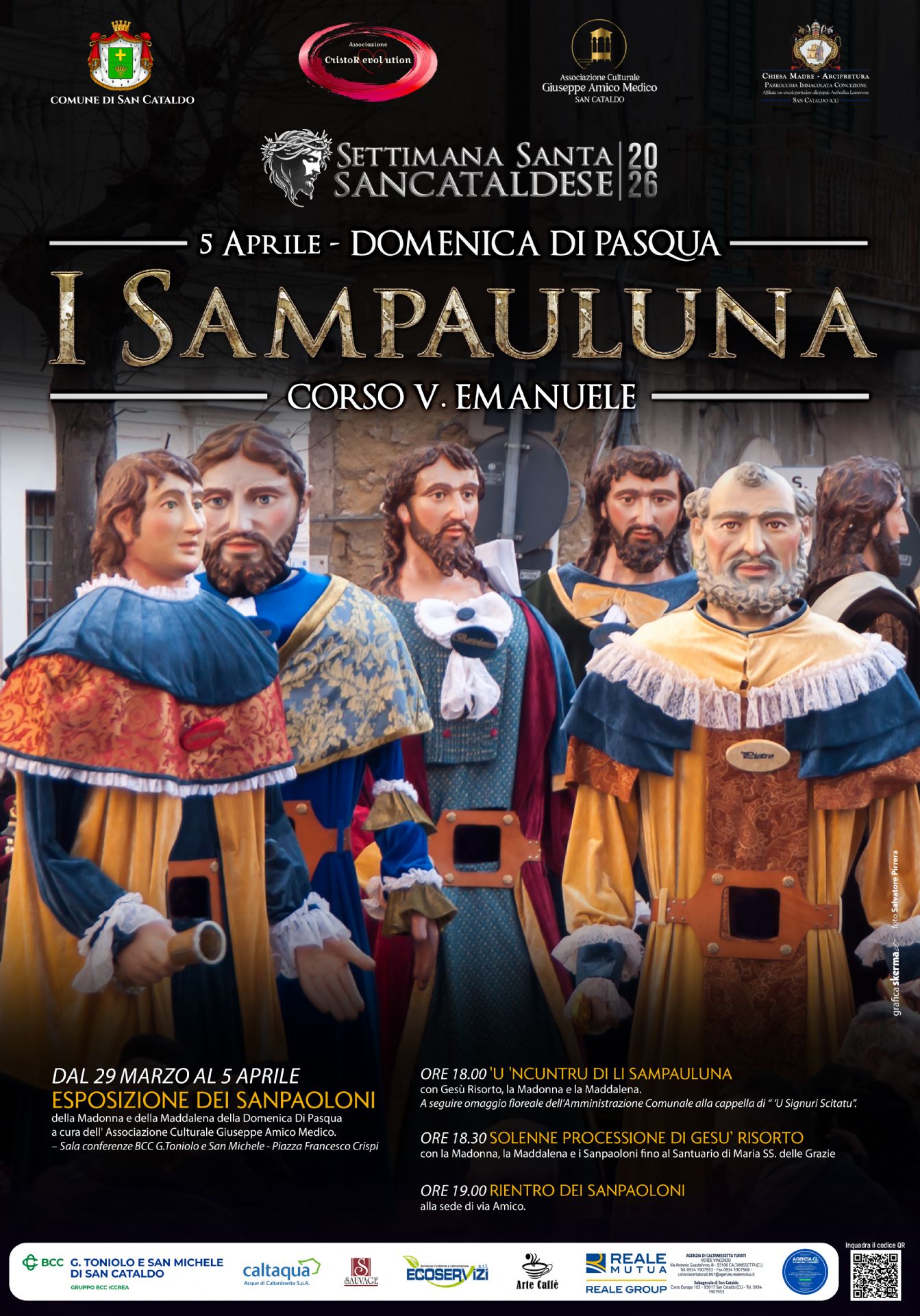 "I Sampauluna" in dialetto sancataldese, sono imponenti giganti processionali di cartapesta che raffigurano gli undici apostoli (escluso Giuda). Queste maestose statue vengono portate in processione durante la Domenica di Pasqua, come parte di un incontro tradizionale tra Gesù Risorto, la Madonna e la Maddalena.